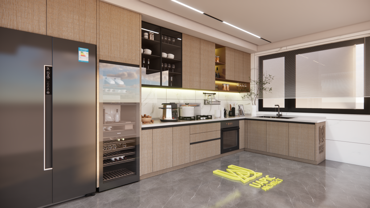 Dapur yang dirancang dengan elegan dan fungsional, menciptakan ruang memasak yang nyaman dan penuh inspirasi